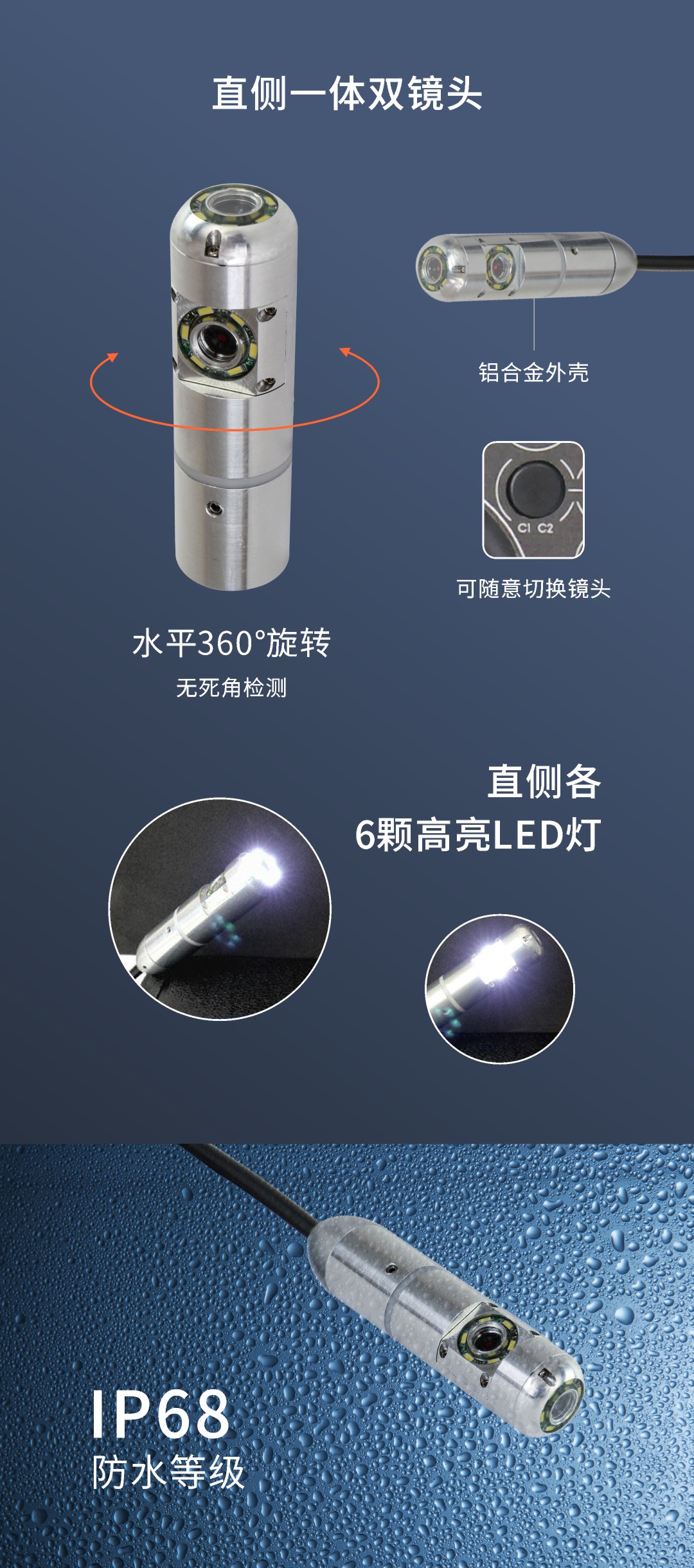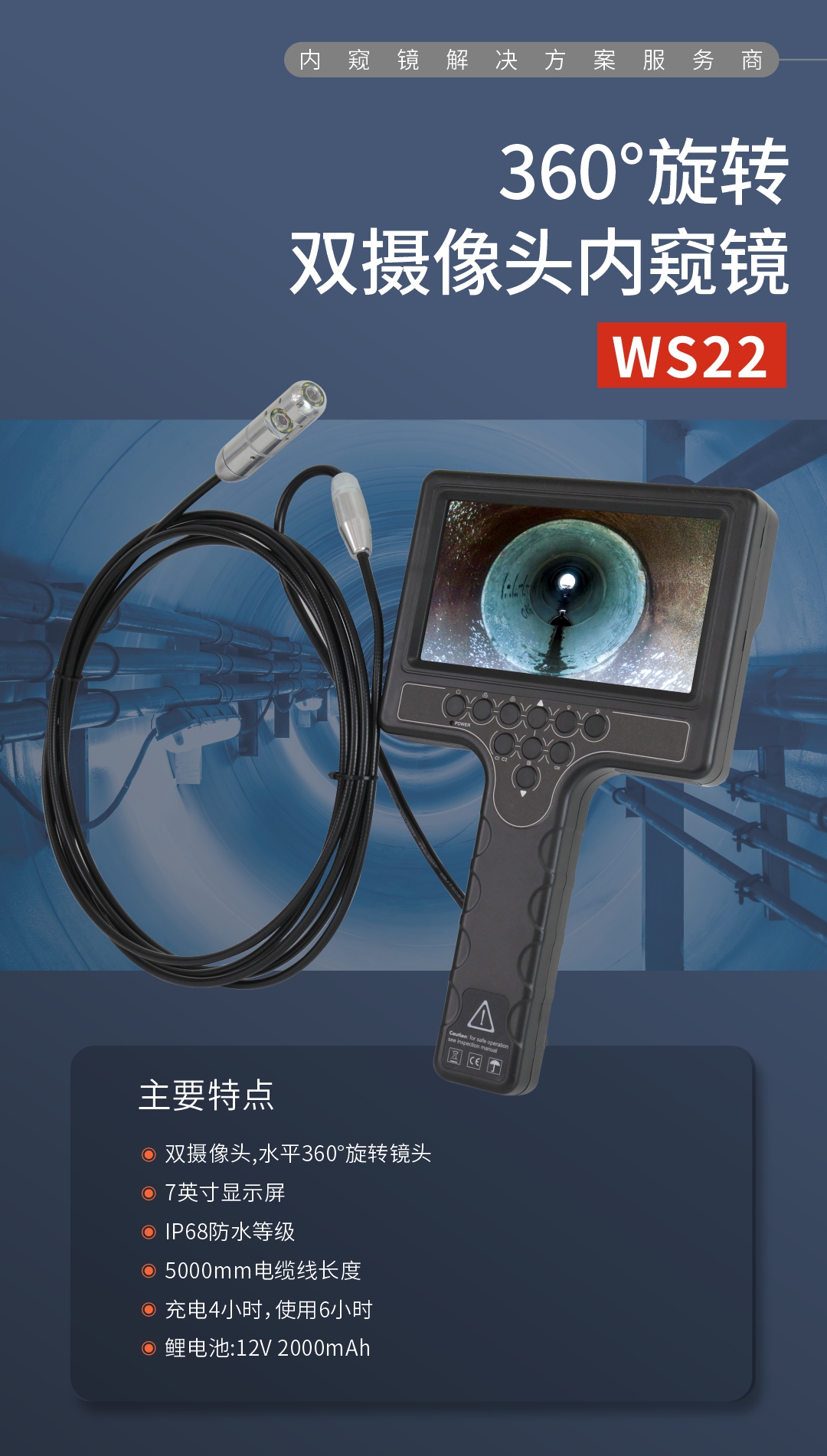 WS22系列360°旋轉(zhuǎn)雙攝像頭內(nèi)窺鏡